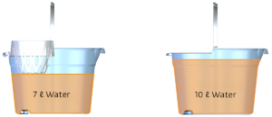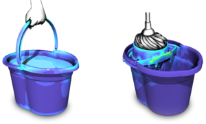 The mop bucket will be used for cleaning and filled with (hot) water. The bucket can be used with or without the wringer. When the bucket is carried, it should not deform too much and the handle should not come loose. Even if the bucket accidentally bumps into an object such as a table, the bucket must not undergo permanent deformation and the handle must remain clicked into the hinge point. When wringing out the mop, the wringer should not bend too much or even bend permanently or break.